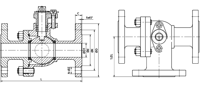 | DN | D1 | d | K | D | f | C | N-ΦZ | L |