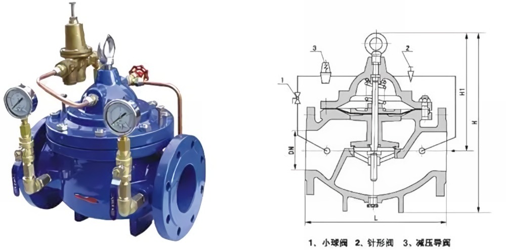 减压阀通过阀内流道对水流的局部阻力来降低水压,而水压降的范围则是由连接阀瓣的薄膜或活塞两边的进出口水压差进行自动调节的。