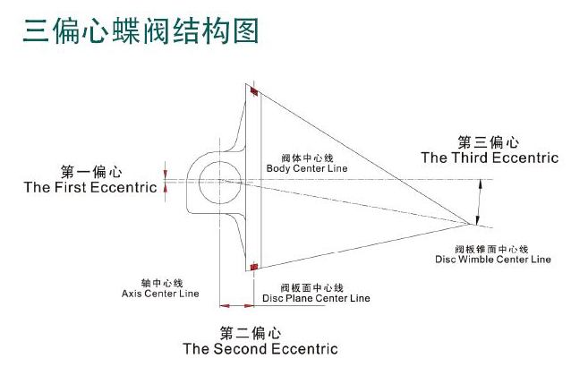 第三偏心距:阀体密封面所在锥面的中心线与阀体通道中心线之间的夹角。