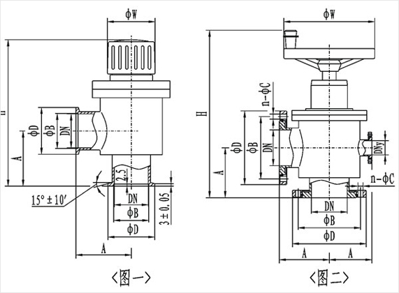 型号 | 通径(DN) | ΦD | ΦB | H | A | ΦW | n-ΦC | DNy(预抽口) | 法兰标准 |