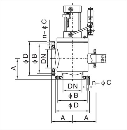 型号 | 通径(DN) | ΦD | ΦB | A | n-ΦC | DNy(预抽口) | 法兰标准 |