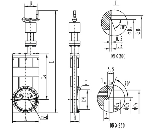 型号 | 通径(DN) | ΦD | ΦD0 | ΦD1 | ΦD2 | ΦD3 | H | A | n-d