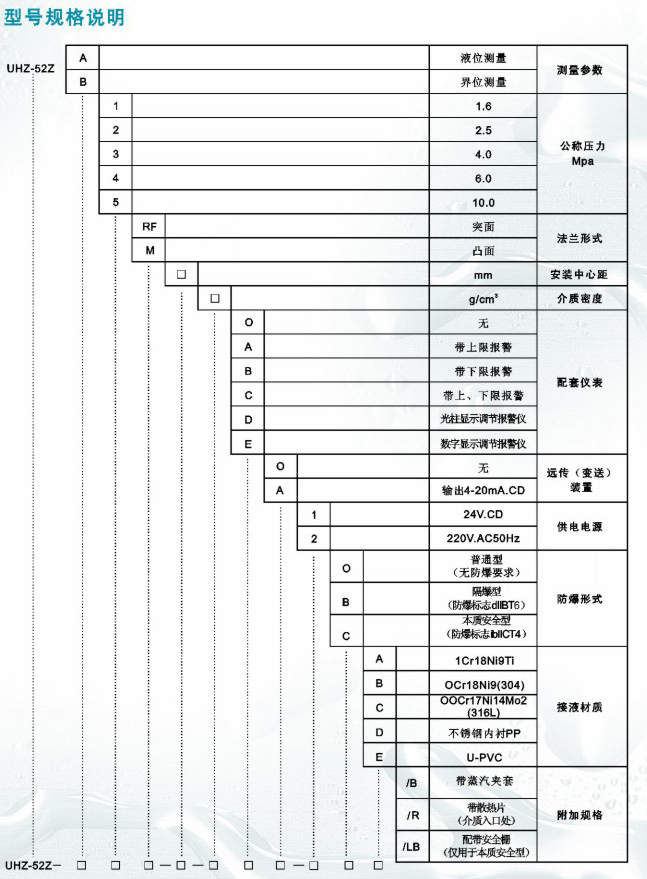 l 适合容器内液体介质的液位、界位的测量。除现场指示外,,还可配远传变送器、报警开关、控制开