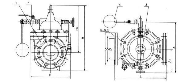 100X遥控浮球阀由主阀、针阀、球阀、浮球阀、微型过滤器等组成水力控制接管系统,调定后,自动控制液面高度。本产品直接利用液面控制,不需要其它装置和能源,保养简便,液面控制准确度高,不受水压影响,密封可靠。 广泛用于高层建筑、生活区等供水管网系统的水塔、水池等设施的液面控制。
