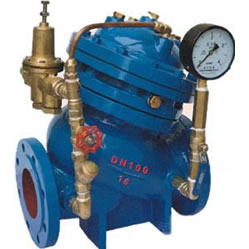 利用设定调压导阀弹簧压力和调节阀开度设定出口压力,并通过接管系统和控制室的反馈作用来稳定出口压力。利用球阀、导阀进行水压自力控制,不需要附加其它装置和能源,维护保养简便,不受进口压力和流量影响,能够保持设定的出口压力恒定,减压稳压可靠,适用于需要稳定压力控制的场合。
